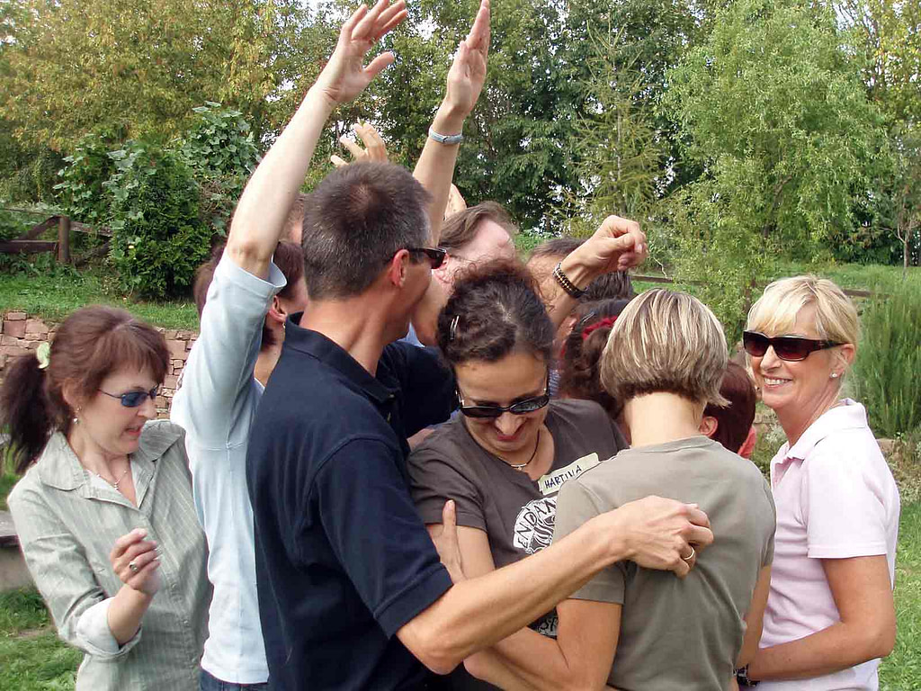 Ausserhalb des Büro kommen sich die Teilnehmer einer teambildenden Massnahme im Unternehmen auf ungewohnte Weise näher.